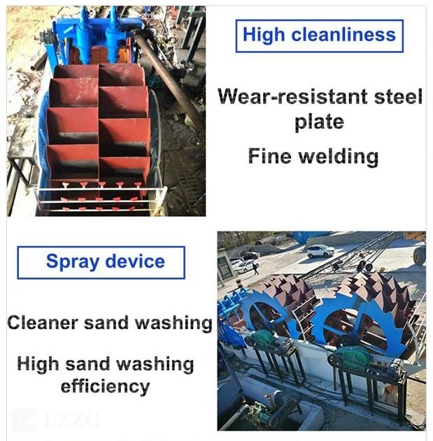 On one hand, water is removed from the sand and stone; on the other hand, the water can be fully used. Finally, the sand and stone goes to the out launder from the rotary impeller to finish the washing task.