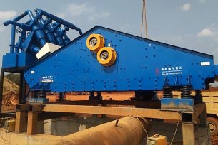 Dewatering screen adopts dual-motor self-synchronization technology. The motors coordinate with universal eccentric and adjustable amplitude vibrator. When the two motors start to work, the vibrators move reversely at the same time. The centrifugal forces is generated by the eccentric blocks will superpose themselves and form a single direction vibration. The high frequency vibration drives the screen move back and forth in line repeatedly. So the sand can be dehydrated and filtered.